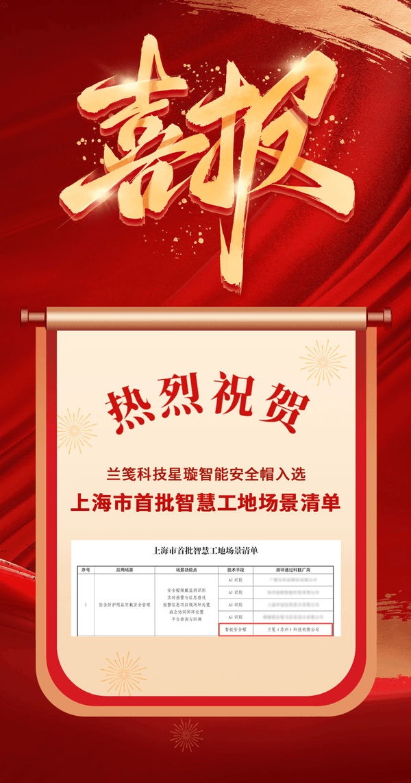 喜報!熱烈祝賀蘭箋科技星璇智能安全帽入選上海市首批智慧工地場景清單!