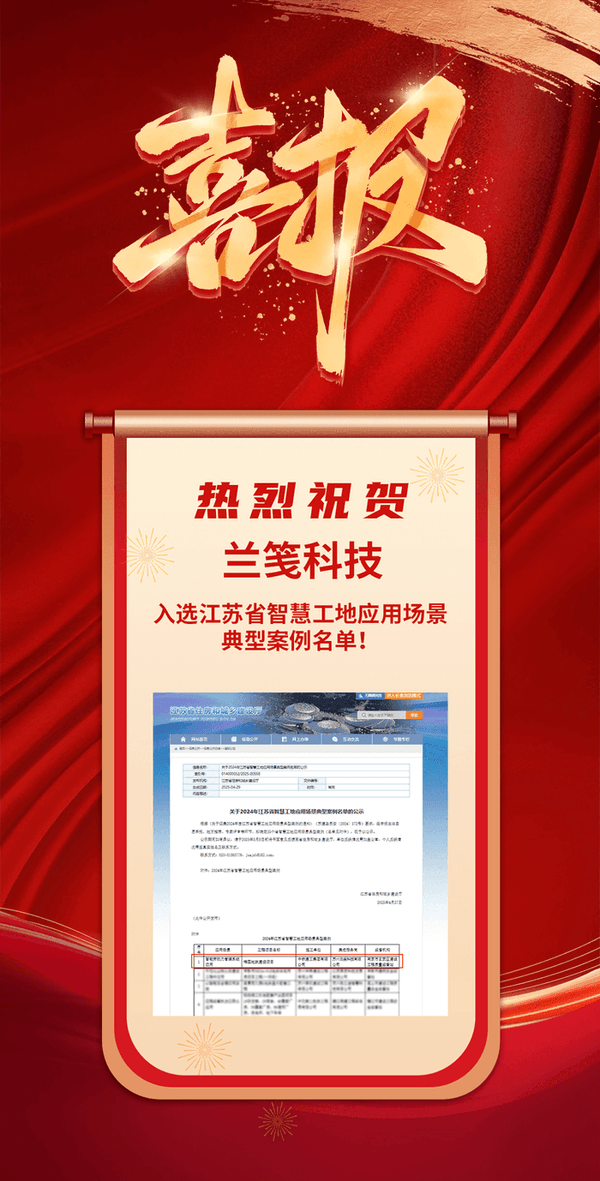 喜報!熱烈祝賀蘭箋科技入選江蘇省智慧工地應用場景典型案例名單!